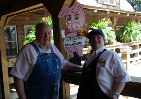 them on the farm, they opened Sconyers Bar-B-Que on Peach Orchard